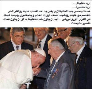 لا شك أن ما يحدث على الساحة السياسية العالمية يمهد لتغييرات جذرية في تاريخ وجغرافية العالم في إطار مخططات دول عظمى على المستوى الظاهري المعلن على استحياء تحت شعارات الحرية والديمقراطية والعدالة الاجتماعية ، أو دون حياء على يد أشباه ترامب ومحركيه الصهاينة ، ولكنه في النهاية ينفذ مخططات "حكومة العالم الخفية" على مستوى الحقيقة ، فليست المنظمة الصهيونية العالمية " والتي مقرها الرئيسي في أمريكا وتديرها بريطانيا وإسرائيل" هي الحكومة الخفية كما يتخيل البعض .. ولكن الجميع مجرد أدوات مستهلكة ، فالحكومة الخفية هي التي نعرف أبرز رموزها متمثلة في " الملياردير اليهودي روكفلر" والذي ظهر وبابا الفاتيكان يقبل يديه في زيارة رسمية ، وكذلك "المياردير اليهودي روتشيلد" ، والملكة اليزابيث ، وهنري كيسنجر ، ورامسيفيلد ، وبوش الأب ، بل والعجيب أن من رموزها الأبرز بعض رجالات الماسونية في الشرق الأوسط المختفين وراء شخصيات عامة ودودة وشعبية .