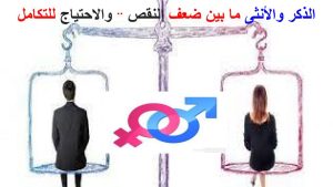 ففي الآية الأولى {خَلَقَكُم مِّن نَّفْسٍ وَاحِدَةٍ ثُمَّ جَعَلَ مِنْهَا زَوْجَهَا .. } ، يقرر سبحانه أنه بعد إنشاء النفوس من النفس الواحدة ، جاءت كل نفس وحدة متكاملة ، تحمل مواصفات النفس الأصل التي تم إنشاءها منها ووصلت لحالة (المستقر) ، ولكن سبحانه شاء أن تنفذ هذه النفوس مهمة إعمار الأرض ، وتكون مستخلفة عليها ، وهو ما لا يتم إلا لو تعاونت هذه النفوس في صور حركة الحياة ، ولكي تتعاون النفوس لابد وأن تكون لديها الدافع الفطري للتعاون ، وهو ما لن يحدث إلا لو كانت كل نفس لديها حاجة فطرية للتكامل مع غيرها ، ولذلك أنشاء سبحانه (اقتطع) من كل نفس متكاملة نفس فرعية (شطر النفس لنصفين) ، فنتج عن ذلك نفوس ناقصة تحتاج للتكامل ، وتلك حكمة الحياة الدنيا ، لتكون كل نفس في حاجة للتكامل ، فتسعى له وتتكامل مع نفس أخرى (تصلح أن تكون مكملا لها) ، ثم صور سبحانه وتعالى كل نفس (ناقصة) في صورتين متكاملتين جسديا (ذكر – أنثى) ، وجعل سبحانه التكامل بينهما جسديا من أصول الفطرة النفسية ، فإذا تكاملت نفوس الذكر والأنثى جسديا ، نتج عنهما أجيال جديدة ، فيحبونها ويربونها ، فيستمر الاستخلاف على الأرض ، وتلك هي حكمة الحياة على الأرض لكل مخلوقات الله وليس ابن آدم فقط ، فالتقاء الذكر بالأنثى تتجدد به الحياة ، وتثمر عن أجيال جديدة ، فتكون حكمة الحياة الدنيا الأساسة ، ما بين (الضعف والاحتياج) ، وهو ضعف النقص ، واحتياج التكامل .
