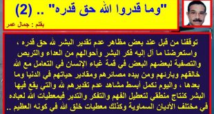 أكمل القراءة »“وما قدروا الله حق قدره” .. (2) .. بقلم : جمال عمر