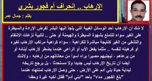 أكمل القراءة »الإرهاب .. إنحراف أم فجور بشري .. بقلم : جمال عمر