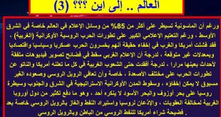 استعرضنا سابقا الموقف العالمي الحالي خلال الحرب الروسية الأوكرانية ، وظهر واضحا أنها حربا ليست إقليمية محدودة ، بل هي مواجهة بين الماسونية الغربية صاحبة النظام العالمي الجديد والمسيطر على العالم منذ عقود ثلاثة مضت وبين وقوى الشرق التي ضجت من المؤامرات الماسونية ، وملت من الغطرسة الغربية في التعامل …