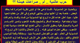 أكمل القراءة »حرب عالمية .. إم .. صراعات هيمنة ؟؟ … بقلم ” جمال عمر